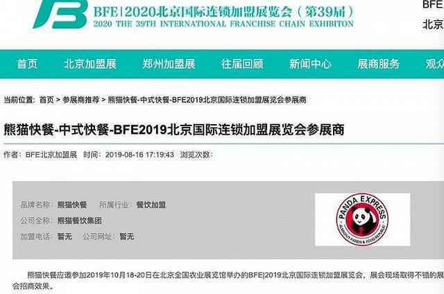 此外,当时吾悦广场认为“熊猫餐厅”正牌的另一理由,是后者参加了去年举办的2019北京国际连锁加盟展览会。北京连锁国际加盟展览会还将其参会的信息挂在官网上,称展会现场取得了不错的招商效果。不过,目前该链接已无法打开。10月21日,澎湃新闻记者联系到北京连锁国际加盟展览会的工作人员,对方表示记得去年有熊猫餐厅参加展会,但对于其“山寨”的结果还需要和项目组核对,目前没有更多信息可以透露。